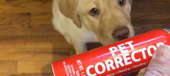 Dog correction air spray. The Pet Corrector is simply a can of compressed air. The Pet Corrector emits a hiss of compressed gas HFC 134a which is completely safe for animals and produces a broad spectrum sound white noise varying from a low frequency rumble to a high frequency hiss to interrupt a dogs unwanted behavior. The pet corrector concept.