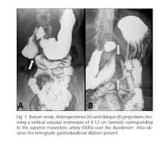 Smas superior mesenteric artery syndrome. Whatever the name this rare condition arises when the duodenum becomes compressed between the aorta and superior mesenteric artery. This compression causes partial or complete blockage of the duodenum. Superior mesenteric artery syndrome SMAS is an unusual condition where the third part of the duodenum is compressed between the superior mesenteric artery and the aorta.
