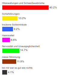 Es beginnt meist mit unregelmäßigen Monatszyklen Gewichtszunahme und Stimmungsschwankungen. Die meisten Frauen leiden an den Symptomen nur wenige. Die Anzeichen der Wechseljahre in der Übersicht.