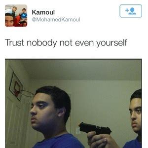 Trust No One It Sounds Bad But A Lot Of People Are. Featured Dont trust anyone not even yourself Memes See All. 20 Trust No One Memes. 25 Best Memes About Don T Trust Anyone Not Even Yourself. Its a free online image maker that lets you add custom. You Can T Trust Anyone These Days Not Even Yourself. You Cant Trust Anyone Meme Funny Meme You Cant Trust Anyone Meme. Fb Is Going Crazy With That Crap People You Can T Trust. Trust No One It Sounds Bad But A Lot Of People Are.
