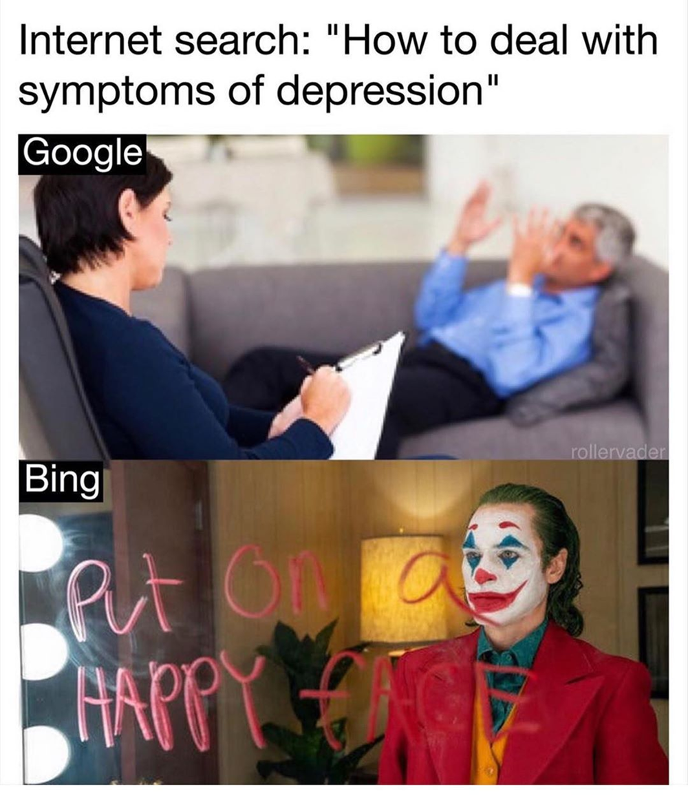 Google search meme. 77 375 Google Google search google chrome hannibal Hannibal Lecter Food food meme. While Google pulls up suicide hotlines first Bing shows you the most efficient way to end things. Google search memes.