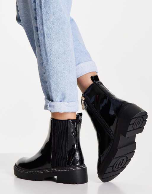 The Chelsea boot-inspired silhouette is taken up a notch with a lightweight 15 platform sole. Patent Chunky Chelsea Boot - Black. Black Patent Faux Croc Chunky Chelsea Boots.