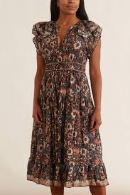 Shop the latest arrivals here. Shop Ulla Johnson floral print annalise dress. Altered deep neckline for more understated elegant look and sides for streamline at underarm and sides. Designer Ulla Johnson had somewhat of a bohemian upbringing. This effortless maxi dress features a deep v-neckline shoulder bow details and tiered skirt with ruching at the waistline. Her nomadic history helped to shape her design POV and in 2000 immediately after graduating from university Ulla launched her first eponymous label. Exclusive authentication service customer support. Part of Ulla Johnsons opulent Autumn 21 collection this Annalisa midi dress is made from silk thats printed with an intricate array of swirling florals and paisleys the brand refers to as Night Sky. Free 2 day shipping and returns.